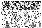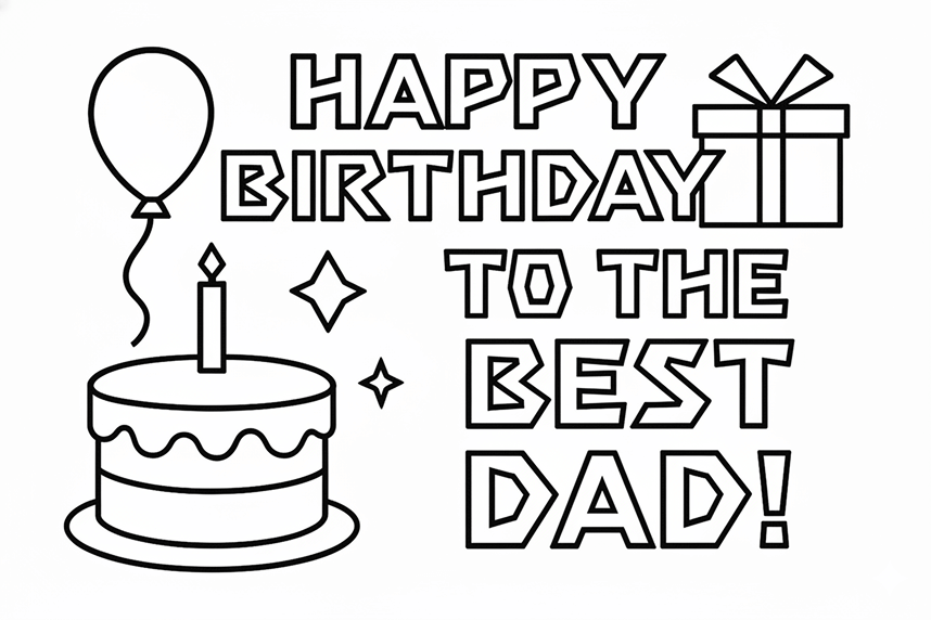 Tu diseño de página para colorear de cumpleaños de alta calidad está listo. Descárgalo como PNG o PDF; perfecto para imprimir páginas para tarjetas de cumpleaños.
