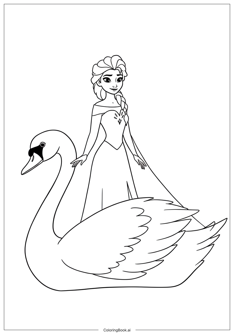 为艾莎上色时,可以考虑使用蓝色和白色的色调,以反映她的冰雪主题。可以选择浅蓝色为她的裙子上色,再为她的斗篷添加一些闪亮的银色或白色。冰天鹅可以用柔和的白色、蓝色和一点银色来上色,使其看起来神奇。孩子们可以使用不同的色调来创造深度和层次感,或许可以在天鹅的羽毛上添加一些浅蓝色高光和深蓝色阴影。别忘了为艾莎的辫子上色;金色或浅蜜色会是不错的选择。